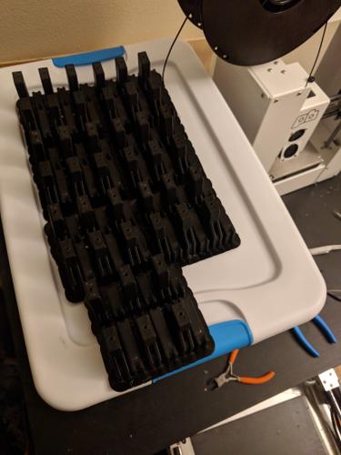Half of the produced 3D printed brackets. 3 top and 3 bottom brackets were printed at a time until the required 40 brackets were produced.